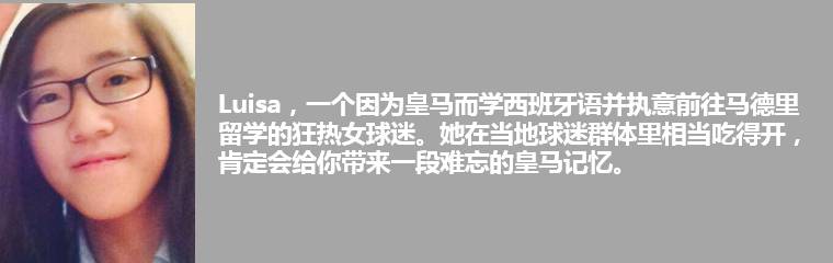 既然是不惜万里前往马德里,赶往伯纳乌朝圣,肯定得找到一位当地的真铁杆·死忠·皇马球迷作伴,因为只有他们才最懂你!下面这三位球迷达人中的一位,届时将会全程陪伴你。