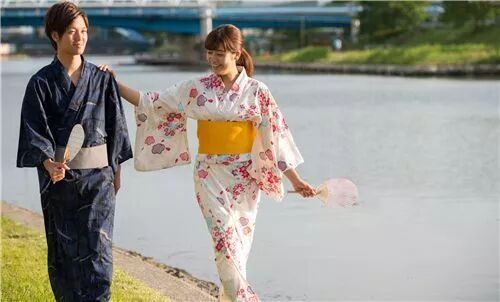 「浴衣(ゆかた)」,夏季穿的和服,通常设计较简单,色彩花纹多种多样,多为棉质无内衬,男女老少各年龄都可以穿。原本是古时候日本一般平民在洗澡后穿的简便的服饰,即沐浴之后穿的衣服,所以叫“浴衣”。
