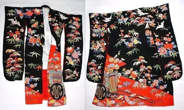「振袖(ふりそで)」是日本未婚女性的首选礼服。根据袖子长度分为大振袖、中振袖和小振袖,大振袖为正礼服,有五枚家纹;中振袖为准礼服,正式程度仅次于大振袖;小振袖则是一般装束。