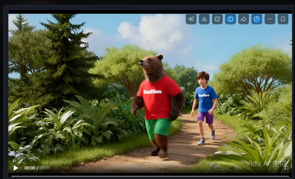 生成的5秒视频中,主体保持了一致性,动作流畅,场景也会根据主体的适应性进行一定的延伸设计。