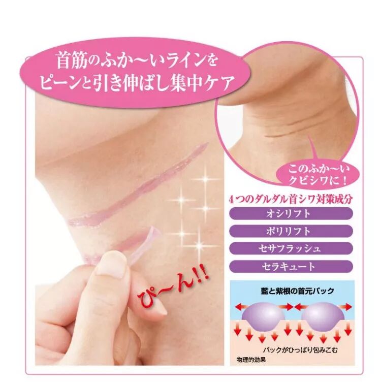 涂在充分清洁干燥的颈部皮肤上,等待自然干透后只要一撕一拉,不仅不会把皮肤扯松垮,还能把肉眼可见的颈纹一起撕掉!同时还有物理提拉紧致的功效——没错,就是这么酸爽!