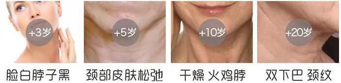 我们颈部皮肤的厚度只有脸部的2/3,胶原蛋白含量和皮脂腺也较少,更加不易保存水分。随着年龄的增加,人的新陈代谢减慢,胶原蛋白流失也会变快,丑陋的颈纹自然也就出现了。