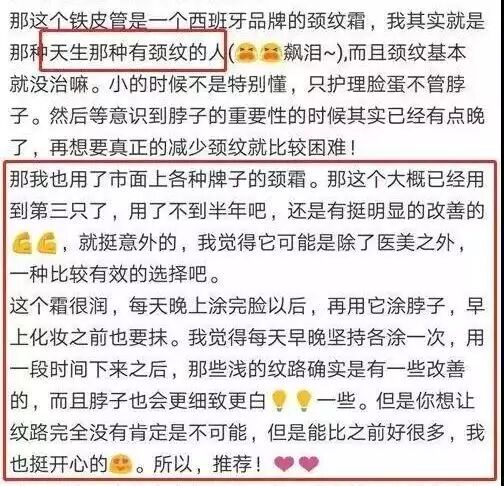 虽然刚涂有点厚重,但充分按摩吸收之后就完全没有油腻感了。而且过了几小时后颈部皮肤还是会保持润滑细腻的状态,是真实地给脖子满满地补足了胶原蛋白。