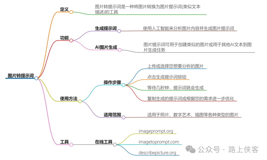 图片转提示词是一种将图片转换为图片提示词(类似文本描述)的工具。它使用人工智能来分析图片内容并生成图片提示词。图片提示词可用于创建类似的图片或用于其他AI文本到图片生成任务。这个工具使用户更容易理解和描述图片内容,促进AI图片生成和其他创意工作。以下是一些与图片转提示词相关的网站: