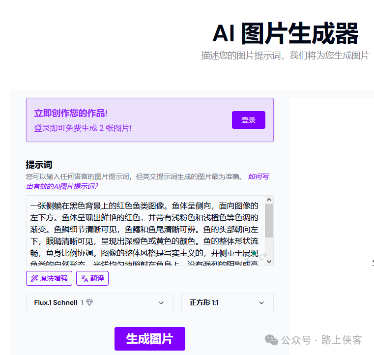 我们可以登录后直接生成图片,路上侠客这边选择使用即梦生成。