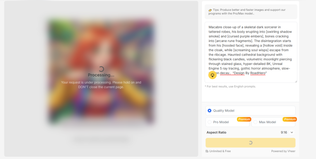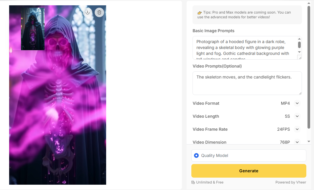 我们将上面生成的图片作为输入,让 Vheer 将其转换为视频。