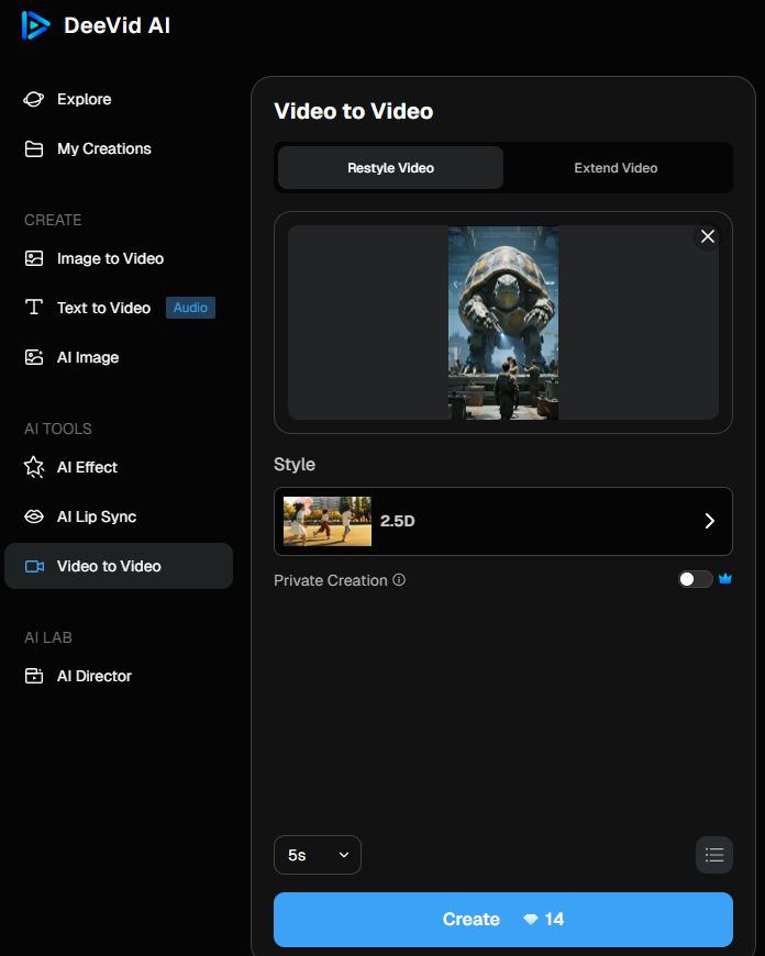 今天我们来关注一款 AI 视频转视频 (Video-to-Video) 工具——Deevid。