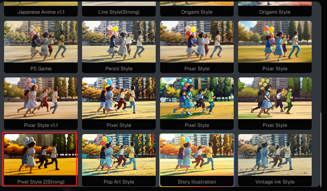 上传需要进行风格化处理的原始视频后,用户可以选择想要转换成的视频风格。