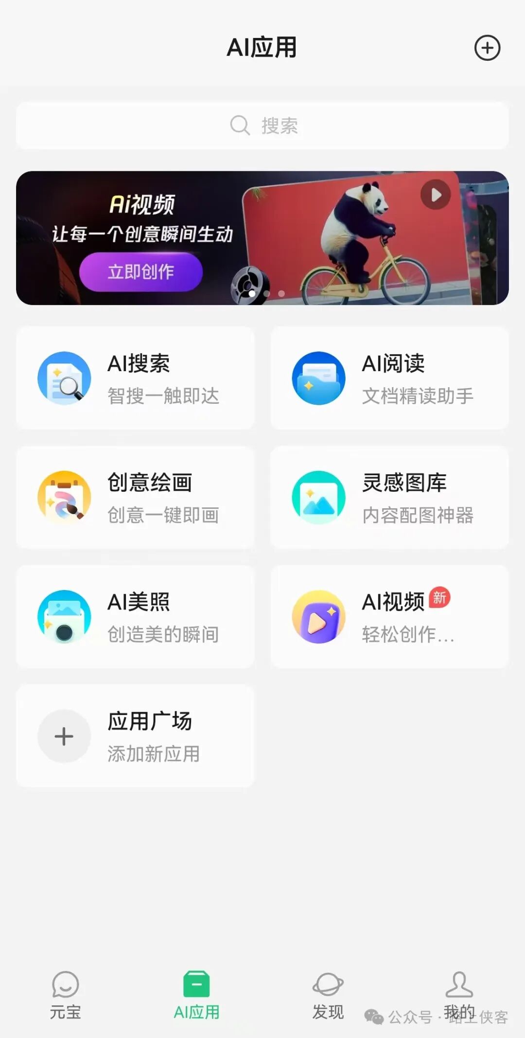 进入腾讯元宝APP的应用就有AI视频使用的入口。不过目前只能进行预约申请。相信很快就能开放使用了。
