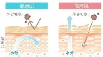 健康肌肤接触足量过敏原也会过敏,但敏感肌肤负责“保卫工作”的角质层已经受损,所以接触过敏原后更容易过敏。