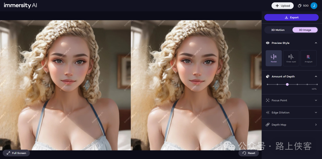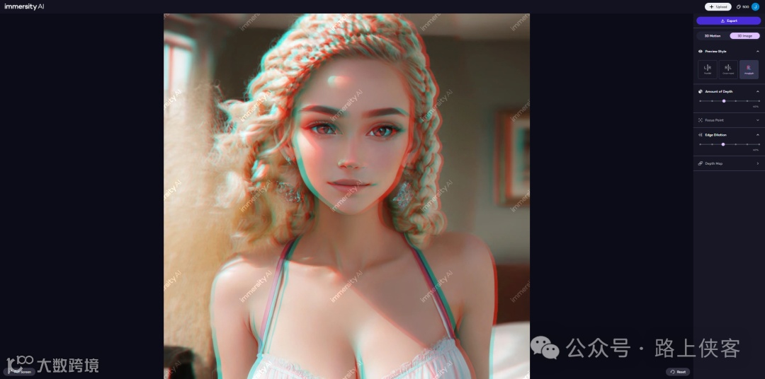 今天介绍一款免费2D图片转换成3D动态图片视频工具-immersity。