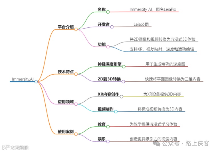 Immersity AI 是人工智能驱动工具的领先平台,可将图像和视频转换为三维,支持所有平台,包括 XR、差异映射、深度和运动编辑。