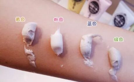 功效:绿色清洁毛孔 粉色滋润保湿 黄色提亮祛黄 蓝色祛痘消炎