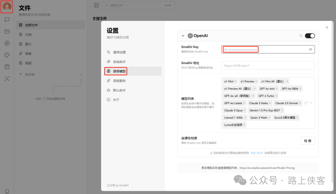 SmallAI集成了众多的AI模型,包括GPT全系列、Claude全系列、微软必应全系列、谷歌Gemini全系列、国内全系列主流模型、向量模型(Embedding)、文生音频模型(Suno)、AI绘画模型(DallE3、Midjourney)、文生视频模型(luma - video)等。用户在使用之前需要对这些模型的功能和特点有一定的了解。例如,GPT系列在自然语言处理方面表现出色,适合用于文本创作、问答等任务;而Midjourney主要用于AI绘画,能够根据用户的描述生成高质量的图像。