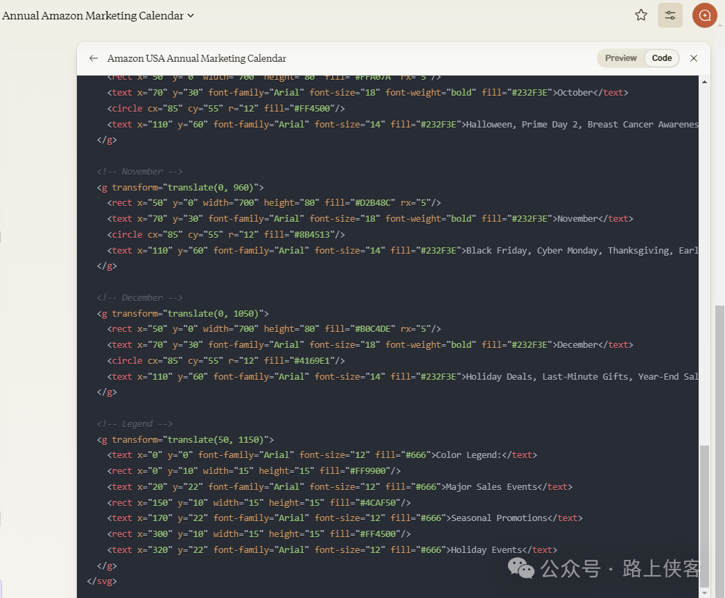 最后我们使用Claude来创建下未能垂直分布的营销日历图表。