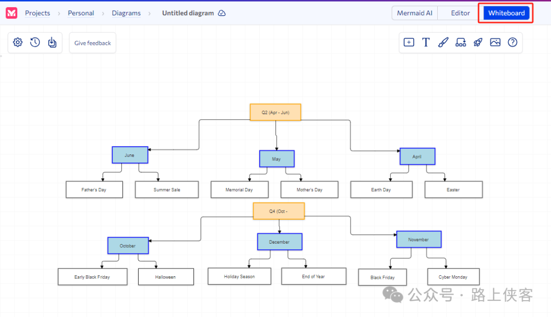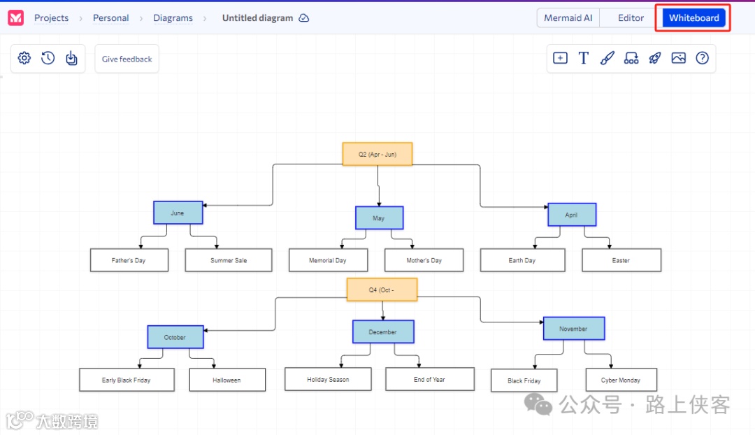 图表复杂度的限制:有部分用户认为,MermaidChart.com 在创建复杂图表时可能会存在一些限制。例如,对于一些非常复杂的业务架构图或者大型系统的技术架构图,在表示细节和关系的完整性上可能不够理想。相比一些专业的绘图软件,MermaidChart.com 在处理大规模、高度复杂的图表时可能需要进一步提升功能。