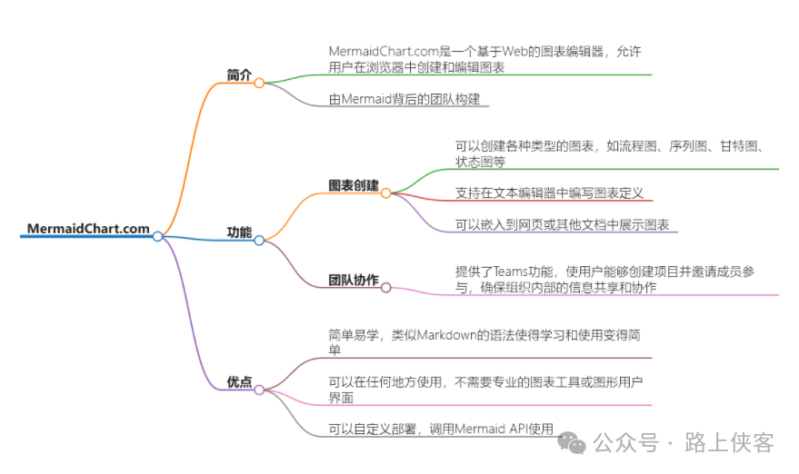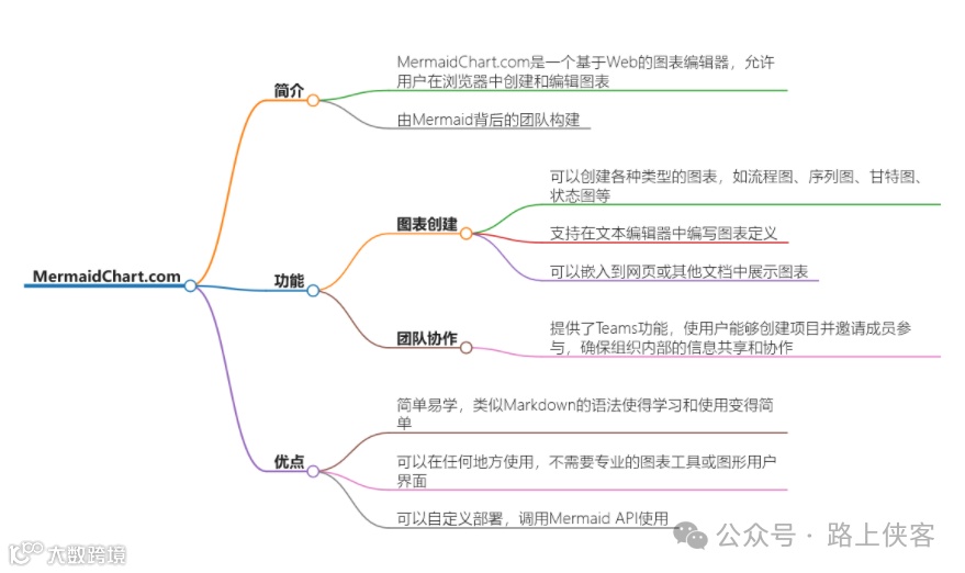 MermaidChart.com 是一个基于Web的图表编辑器网站。它是由Mermaid背后的团队构建的,与Mermaid有着紧密的联系,Mermaid是一种开源的文本驱动图表生成工具,而MermaidChart.com 在此基础上提供了更便捷的图表创建和编辑功能。这个网站允许用户在浏览器中创建和编辑各种类型的图表,是一个专注于图表绘制、编辑与协作的在线平台。用户可以通过创建账户来试用包括Mermaid在内的相关功能以及可视化图表套件,从而进行图表的创建、编辑、保存等操作,以满足不同的需求,如项目规划、文档制作以及执行复杂项目等相关的图表需求。