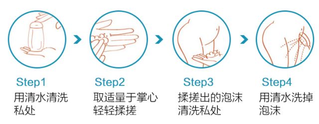 按照说明,首先用清水清洗私处,再取适量液体于掌心轻轻揉搓,再用揉搓出的泡沫来清洗30秒左右(不要直接把液体按上去打泡沫哦),最后再用清水冲净。