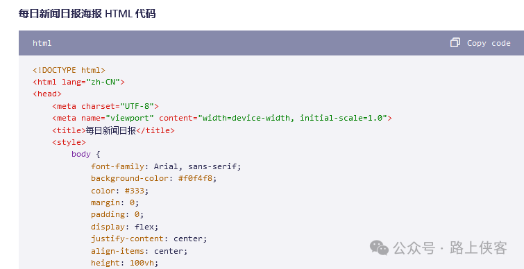 最后,根据提示词中的要求,智能体生成了包含新闻内容的海报页面代码。