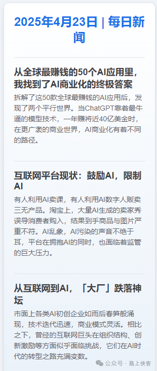 需要更多免费AI工具、最新Ai信息、详细使用和丰富Ai教程、Ai变现方法的小伙伴可以加入 路上侠客的知识星球!