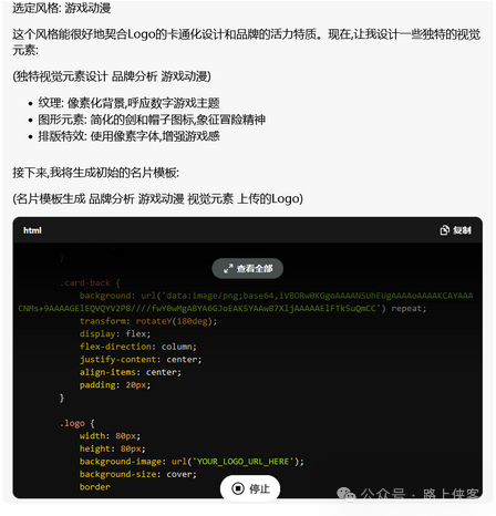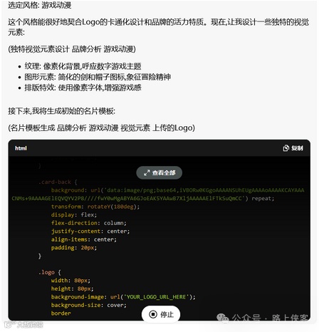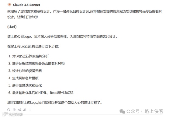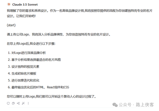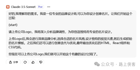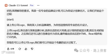 输入名片设计提示词后,Poe的Claude模型进行反馈。