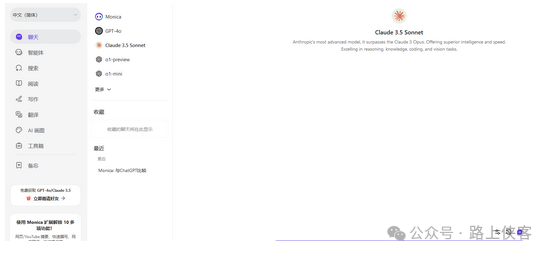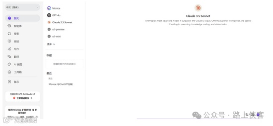 除了之前提到过的Poe,其实常用的还有Monica中也可以免费使用Claude 3.5 sonnet模型。
