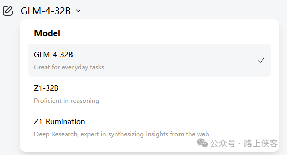 进入网站后,我们可以看到 Z.ai 支持的多种模型,包括今天重点体验的Deep Research。