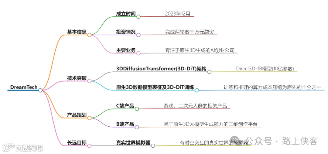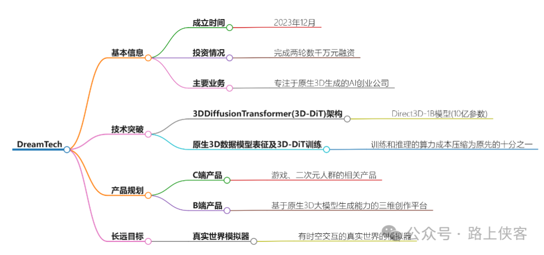 DreamTech 是一家专注于原生3D生成技术的AI创业公司,成立于2023年12月。该公司于2024年5月发布了采用3DDiffusionTransformer (3D-DiT) 架构的Direct3D-1B模型,该模型拥有10亿参数,,。Direct3D模型被认为是全球首个公开发布的原生三维生成路线的大模型。创始人张飞虎博士及其团队成员在3D生成领域有着丰富的经验和深厚的学术积累,此前他们创立的公司已被苹果、谷歌、博世等行业巨头收购。