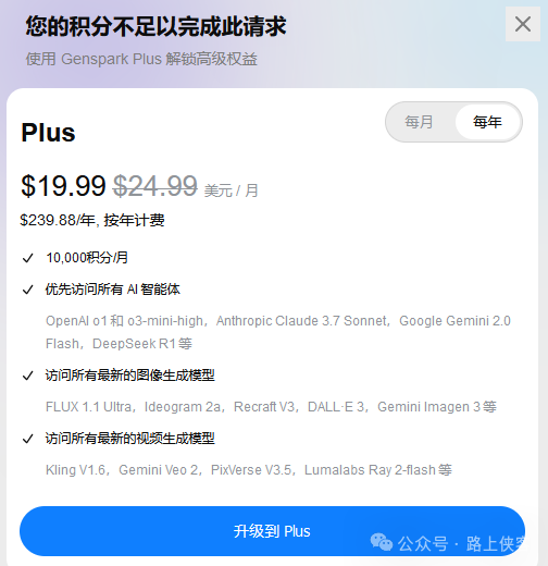 视频生成需要更多的积分点,需要升级到每月19.99美金的Plus版本才行。