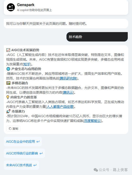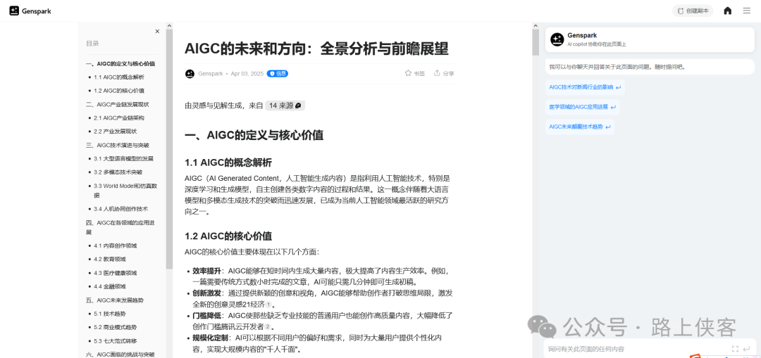 Perplexity作为一个AI驱动的信息摘要平台,通过提供多源合成概述,满足了用户快速获取洞察力的需求。但是,这种服务可能无法满足用户对更深入分析和其他搜索需求的期望。Genspark则通过创建Sparkpages,提供更深入、全面的信息,并鼓励用户创造知识,允许用户基于现有内容构建新的Sparkpages。