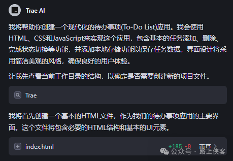 在Trae的操作面板左侧可以即时查看代码。