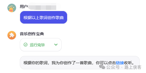 至此整个音乐AI应用对话机器人就创建完成了,是不是感觉相当简单便利。