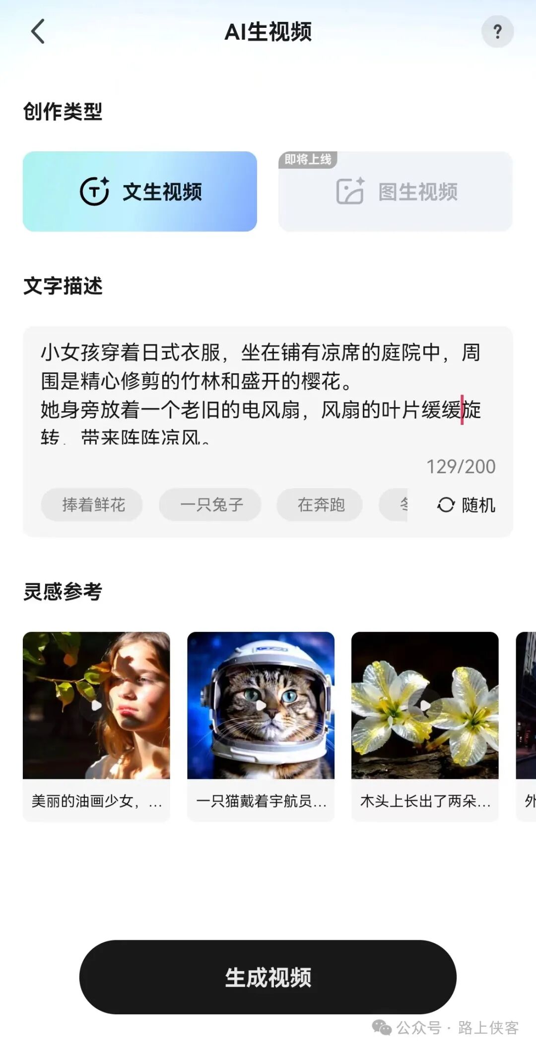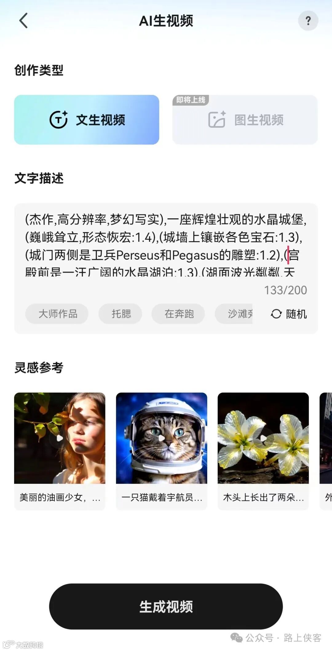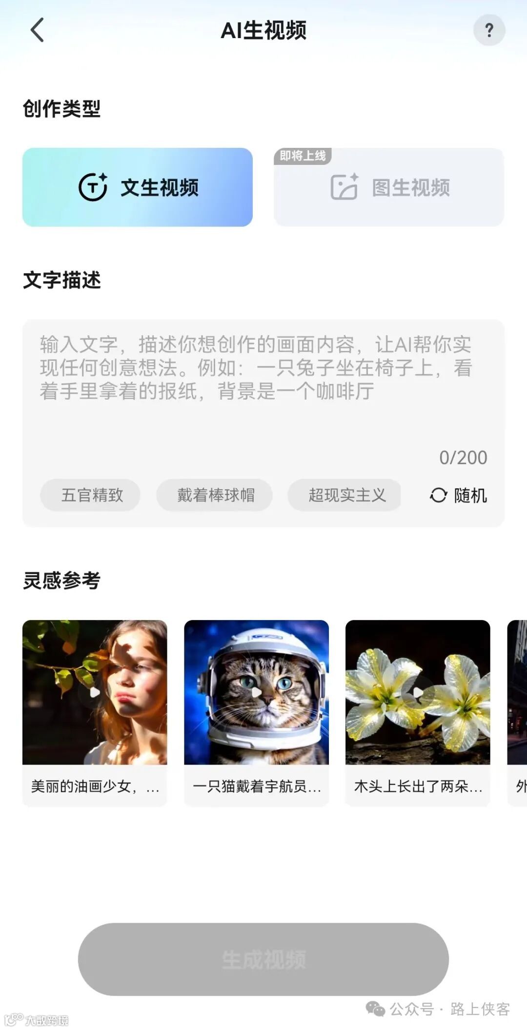 路上侠客也来蹭一波热度,看看这个文生图生视频AI工具到底效果如何,不过到目前为止图生视频功能还未开放。