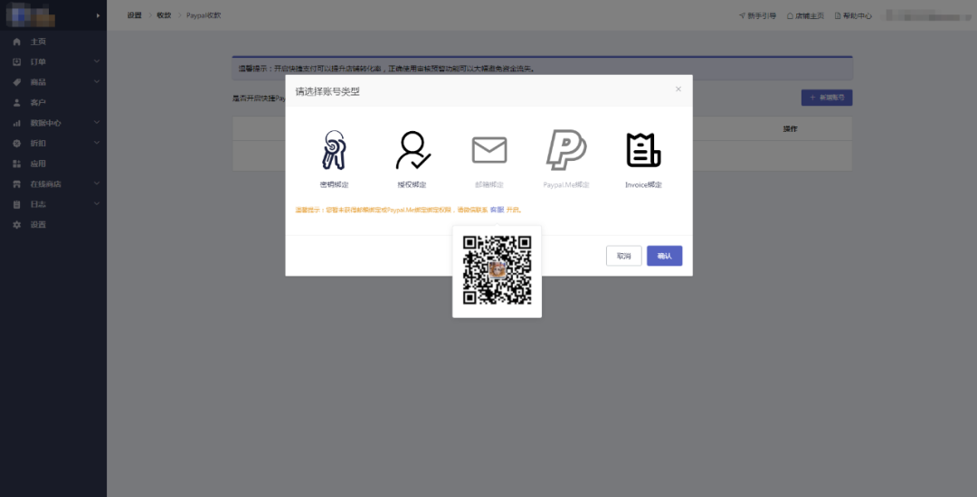 1、在Shopibar平台,开通PayPal.Me使用权限。