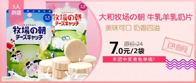 来自牧场的醇正奶源。奶味醇厚浓郁,口感香酥,轻轻放在嘴里,奶香四溢,满口留香。牛奶、羊奶2种选择,休闲时光的最佳伴侣,还可以做宝宝奶粉的替代品哦!7元2袋,每单中奖者直接免单哦!