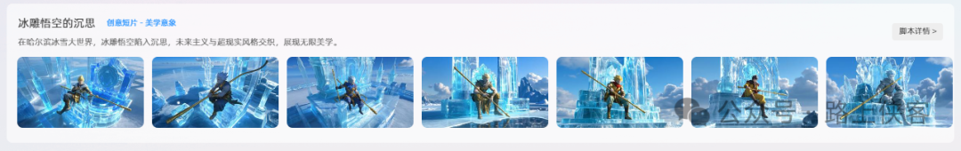我们先来输入一段提示词:“由冰晶雕刻而成的透明冰雕悟空,温暖的光线,晴朗的天空,突出冰的质感和细节,高品质,杰作,3D 技术,实景拍摄,8K 高清,背景是蔚蓝的天空,哈尔滨冰雪大世界:电子游戏《黑悟空》中悟空的巨大冰雕坐在在超大的冰雕宝座上,营造出令人惊叹的场景。周围的人们用手电筒拍照,他的手举着金箍棒。背景是蓝天白云,他的头靠在蓝天白云上,似乎陷入了沉思。下面是一个远景镜头,可以看到许多游客在拍照。上方是晴朗的天空,周围是蔚蓝的天空。高品质,杰作,3D 技术,真实摄影,超高清 HDR”