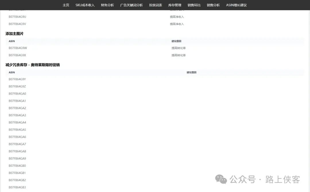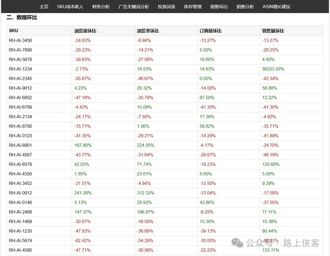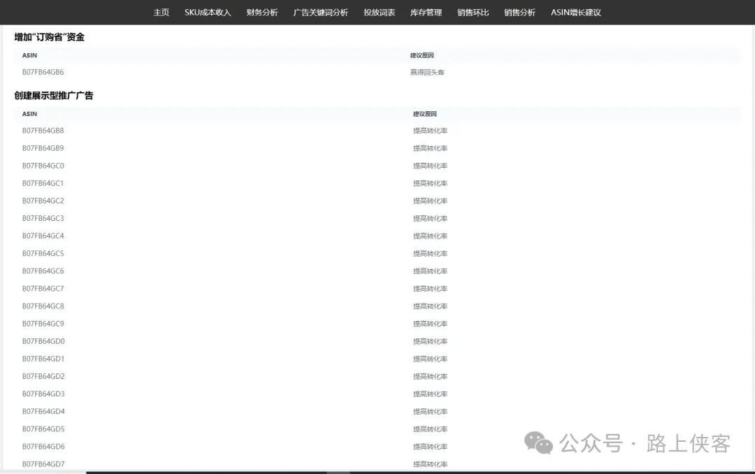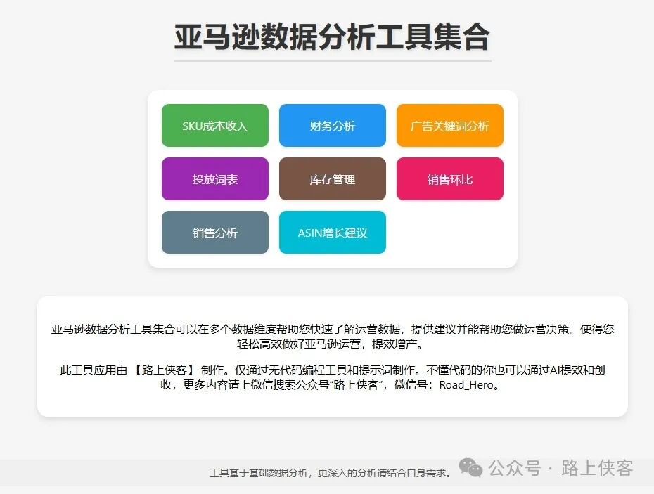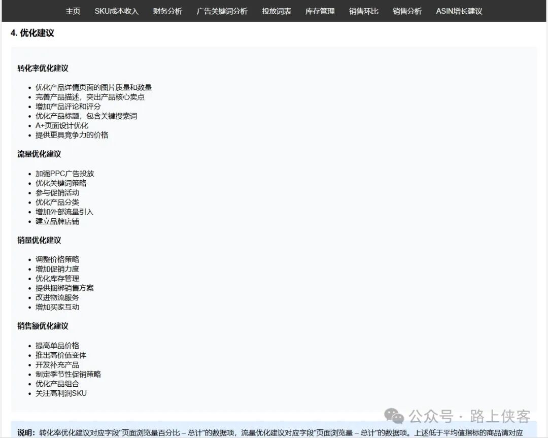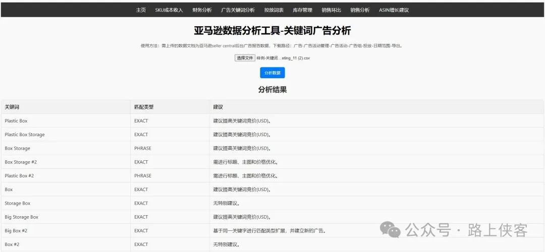 基于这个前提和目的,路上侠客在无代码编辑状态下使用AI开发了一套系统专门来进行对亚马逊运营数据的分析和指导。