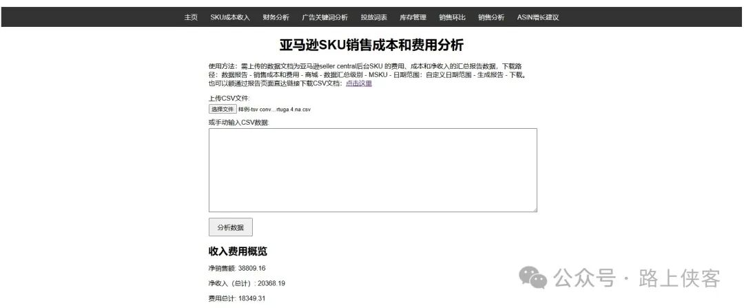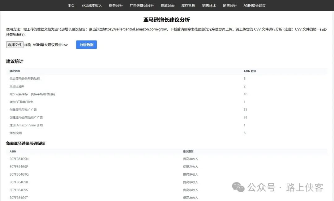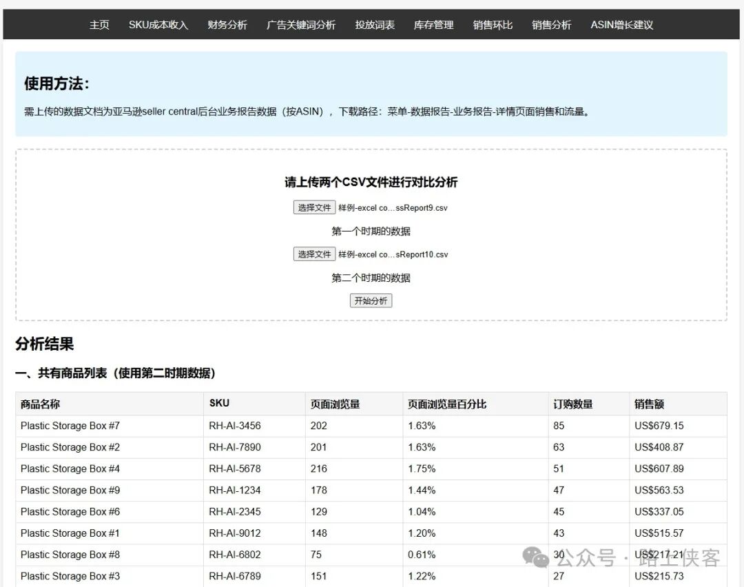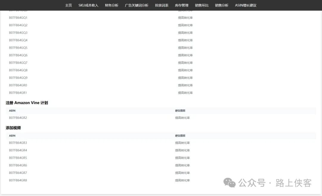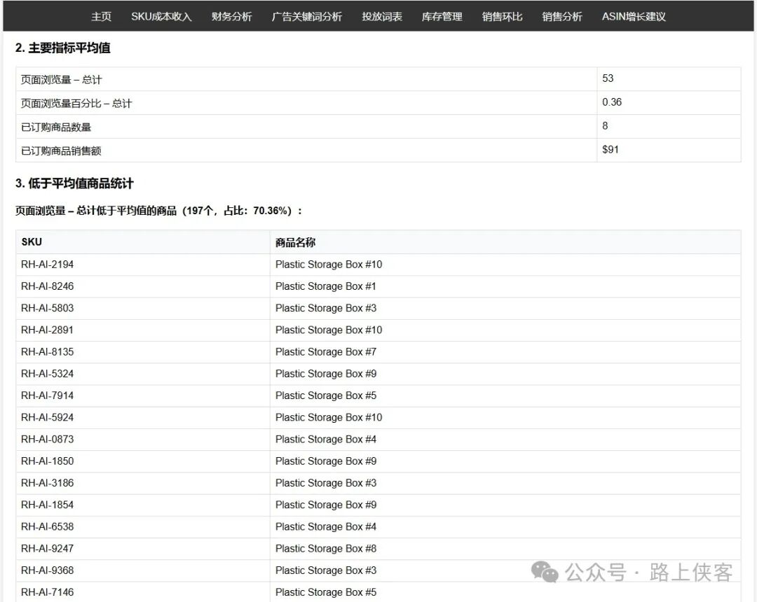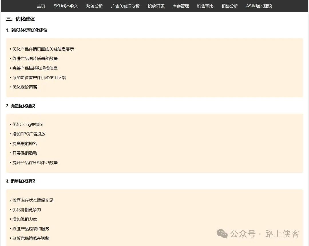 基于这个前提和目的,路上侠客在无代码编辑状态下使用AI开发了一套系统专门来进行对亚马逊运营数据的分析和指导。