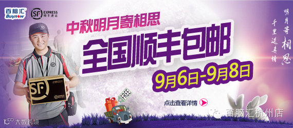 9月6-8日,在百脑汇消费满千即可享受全国包邮,