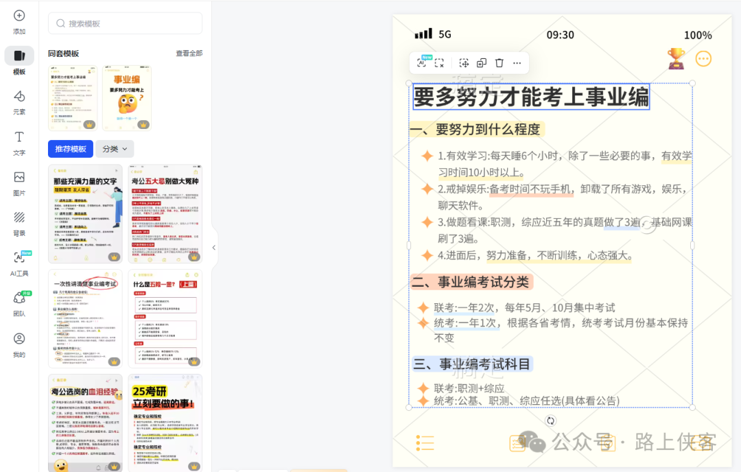 账户登录成功后可以根据自己的需求选择各类模版。如,小红书。