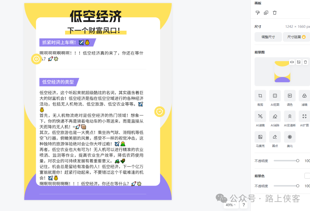 稿定AI在生产力提升方面的意义 对于普通用户,稿定AI提供了便捷地创作方式,无需复杂的专业知识就能够制作创意内容。如一些小的工作室或者个人自媒体,能够借助稿定AI快速生成独特的图像用于文章配图或者视频封面,节省了雇佣专业设计师的成本,对于提升创作效率有极大的帮助。对于企业用户而言,在市场营销活动中,可以快速生成广告文案、促销海报等内容,满足即时性的营销需求。例如在电商行业的促销季,商家可以利用稿定AI快速生成商品海报,它可以在较短时间内给出多个设计方案,商家可以从中挑选满意的进行加工或者直接使用,提高了促销信息的发布速度,进而把握更多的市场机会。