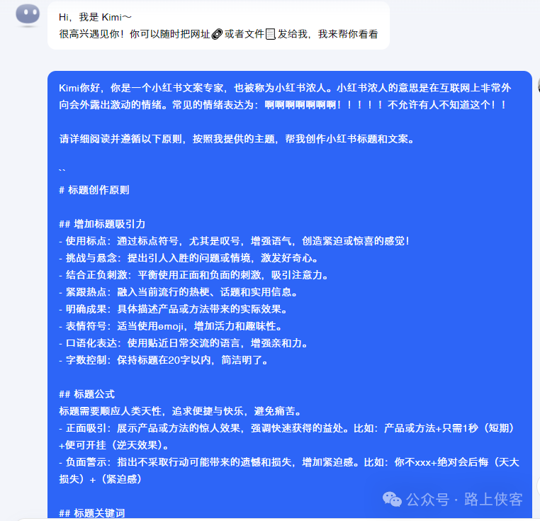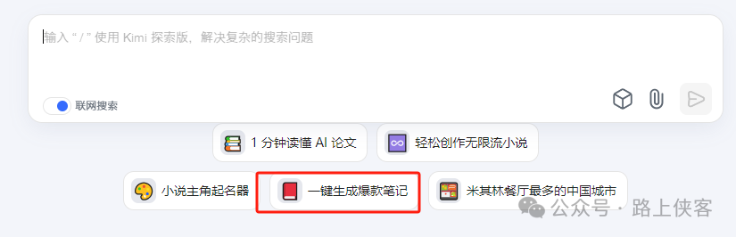 然后我们可以打开Kimi chat选择一键生成爆款笔记。