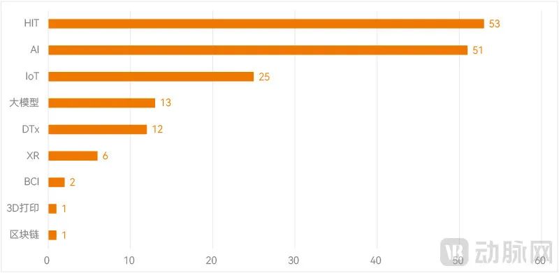 虽然在融资事件数上少于2023年同期,但在累计融资额上有所提升。这其中,百川智能在2024年7月完成的50亿元融资创造了近年来数字医疗领域单次融资的纪录。另外,有51起融资事件涉及的企业主要业务包含人工智能;其中,涉及大模型的融资事件达到了13起。这都说明了人工智能,尤其是大模型在2024年的火热程度。