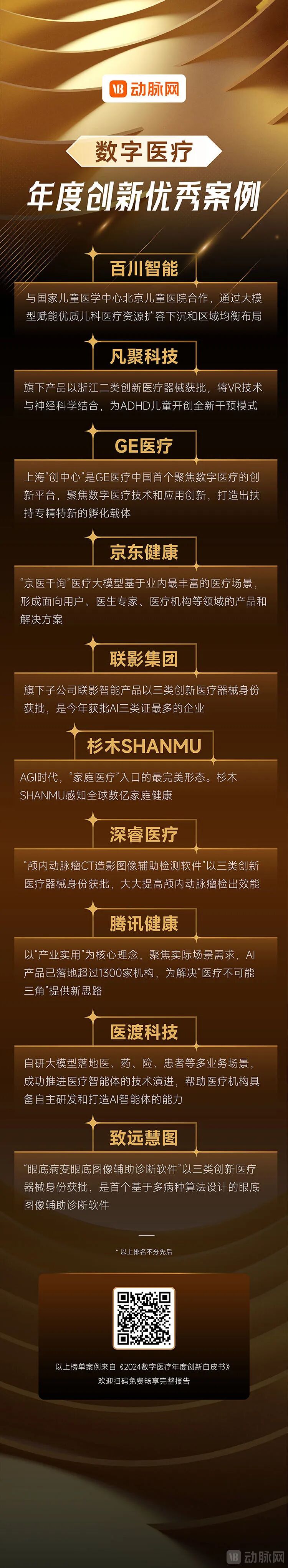 即使对数字医疗持最消极看法的人也无法否认数字医疗在更长远历史周期中的巨大价值。这也是为何即便过去一年在大环境并不理想的情况下,数字医疗依然在一路狂奔,不断进化。作为数字医疗行业的长期观察者,动脉网与动脉智库深感有责任将这种进化整理记录,因此,我们再次出发,制作了《2024数字医疗年度创新白皮书》,从旁观者的角度记录数字医疗的悲欢喜乐。