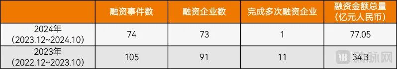 一级市场状况向来是行业整体走势的风向标之一。动脉智库以2023年12月至2024年10月为分析区间,通过对投融资数据进行不完全统计,发现74起有效的国内数字医疗相关投融资事件,涉及73家国内数字医疗企业。