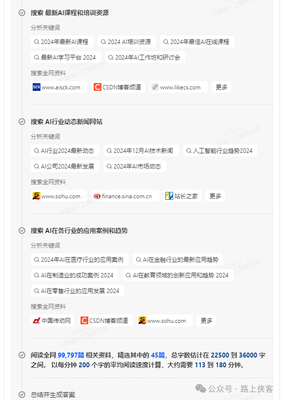 该模式会调用多个大模型来协同处理问题。在单次搜索中至少调用三个大模型,这体现了其整合多种资源的能力。这些大模型在不同的步骤和角色中发挥着各自的作用,例如经过意图识别、搜集者、思考者、反思者、阅读者、推理者、总结者等七个角色完成至少12个步骤。不同的角色有着明确的分工,意图识别负责理解用户问题的真正意图,搜集者开始广泛收集相关资料,思考者对收集到的资料进行初步分析和整合,反思者则对前面的步骤进行检查和反思,阅读者深入阅读搜索到的内容,推理者基于阅读的内容进行逻辑推理,最后总结者将所有的结果汇总成一个完整的答案。这种多模型协作和多步骤处理的方式,就如同一个团队在合作解决问题,每个成员都发挥着不可或缺的作用,从而提高了回答的准确性和质量。