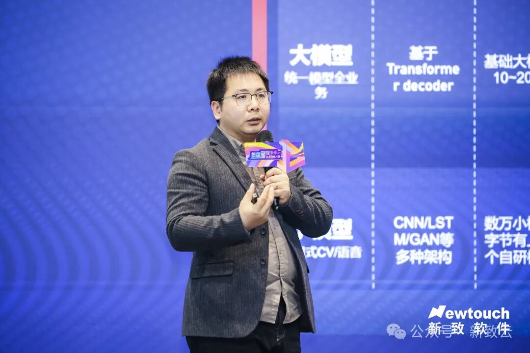 追一科技解决方案总监李松先生展示了 “大模型赋能 AI 一体机” 的创新应用成果。他表示:针对目前企业在大模型应用中训练复杂、落地经验欠缺、部署耗时长等问题,新致和追一共同研发了一站式交付的大模型一体机,一体机结合新致人工智能平台和追一大模型和AI员工领域的研发优势,开箱即用,数小时内即可为企业部署专属AI客服、AI助理、AI运营等多种类型的AI员工,完成各类工作,提升企业竞争力的价值。