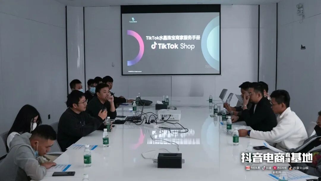 TikTok海外运营中心负责人接待了参访团,介绍了杭州抖音电商直播基地及TikTok海外运营中心的整体发展情况、业务方向、供应链规模,自营直播间整体运作状况等。