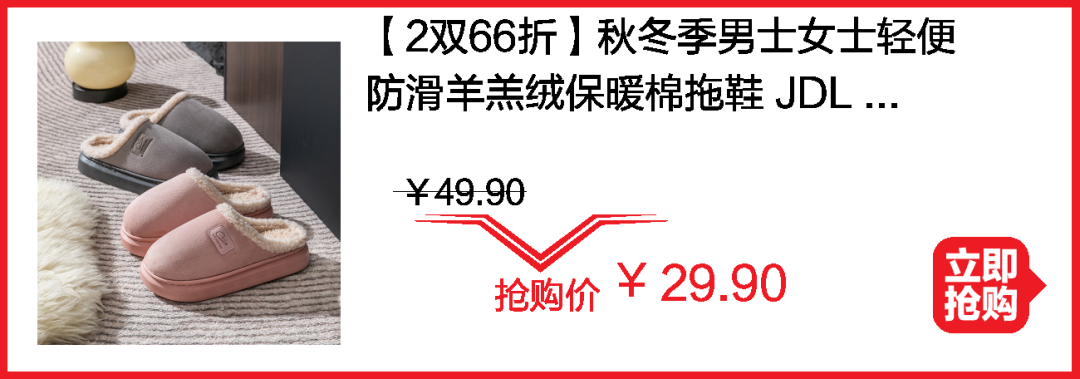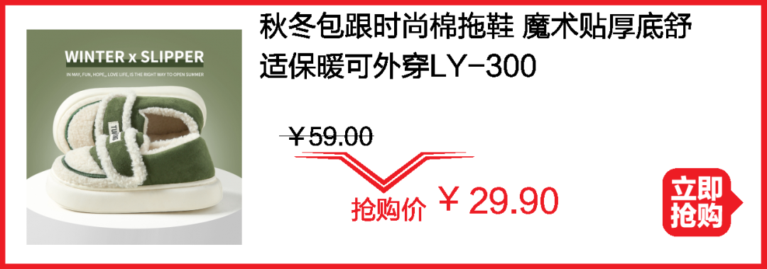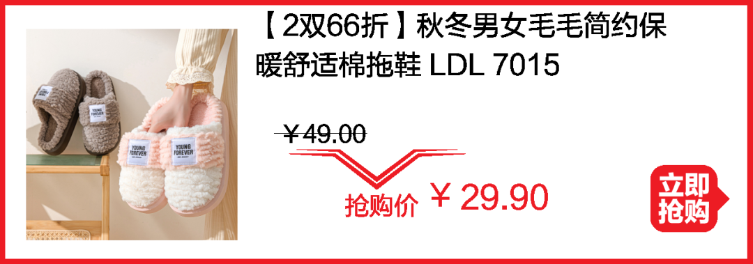 棉拖冲量秒杀 两双39.9元