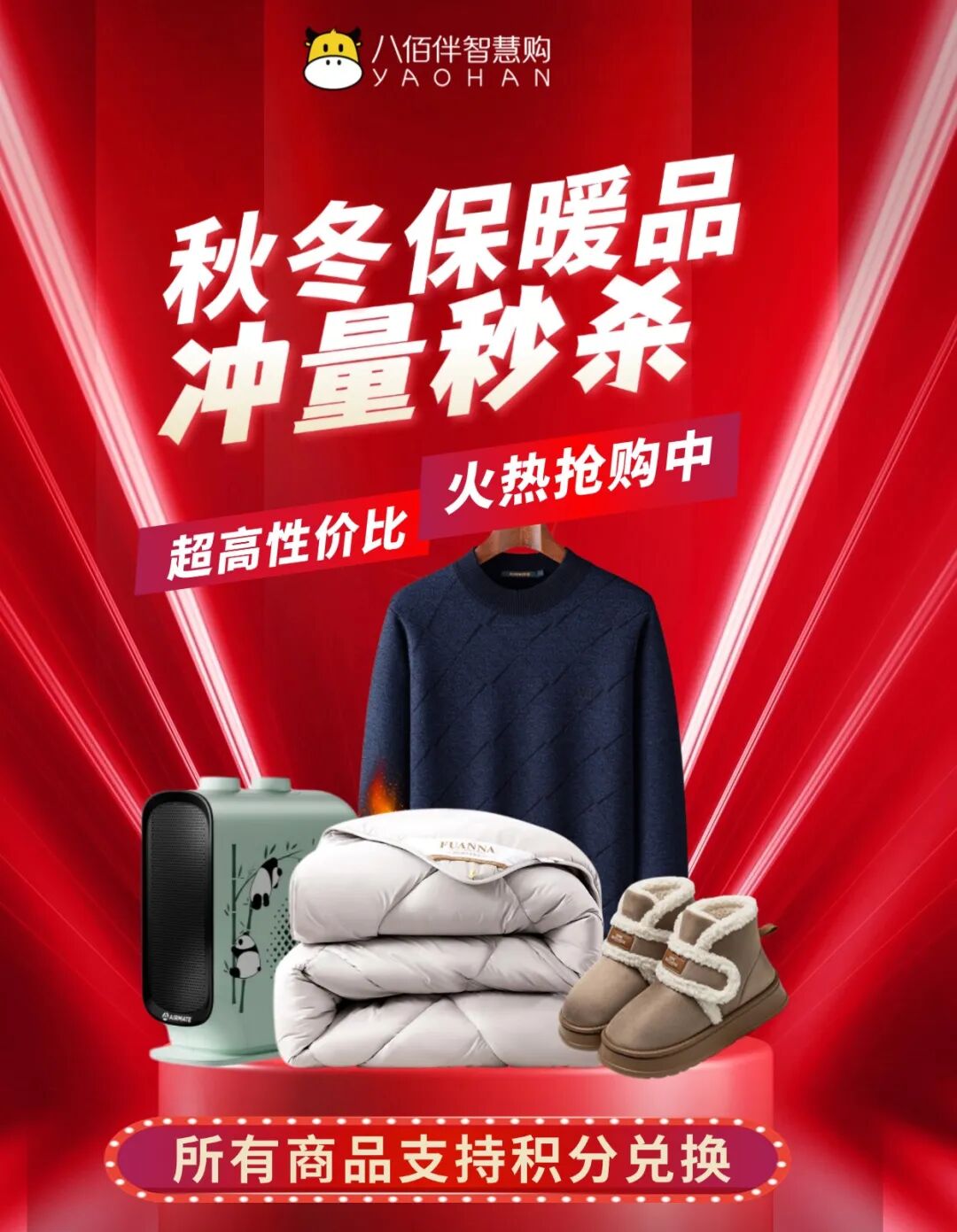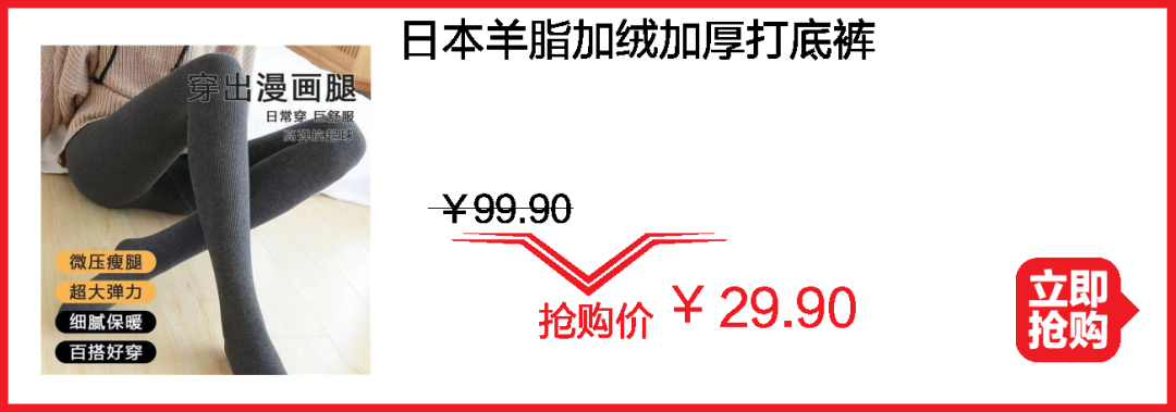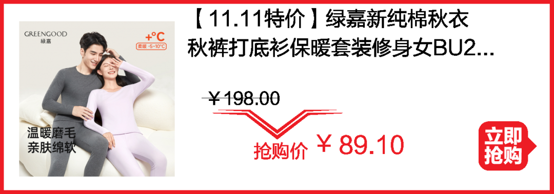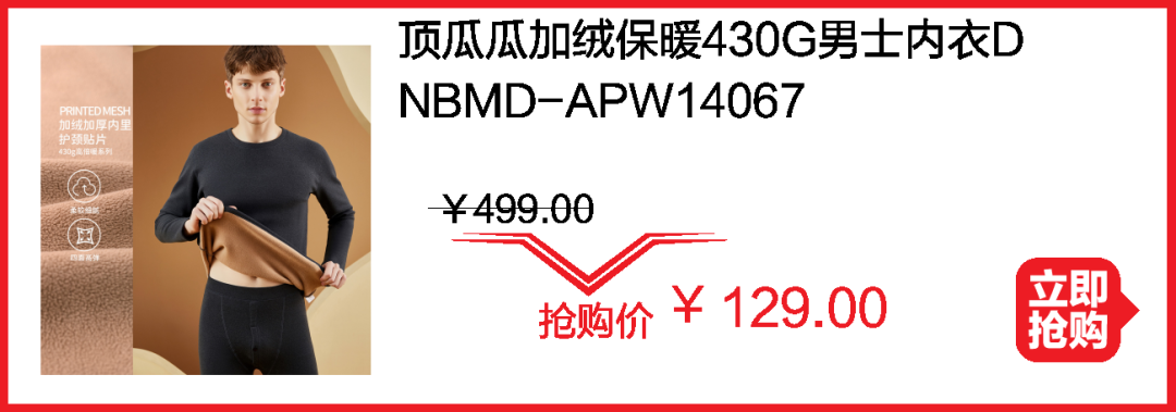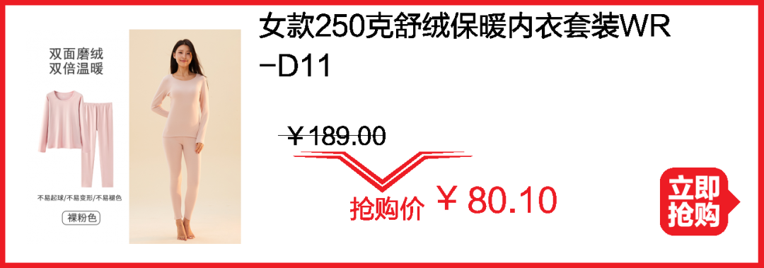 保暖品冲量秒杀!加绒打底裤¥29.9;舒绒保暖内衣套装¥80;羊毛被¥242